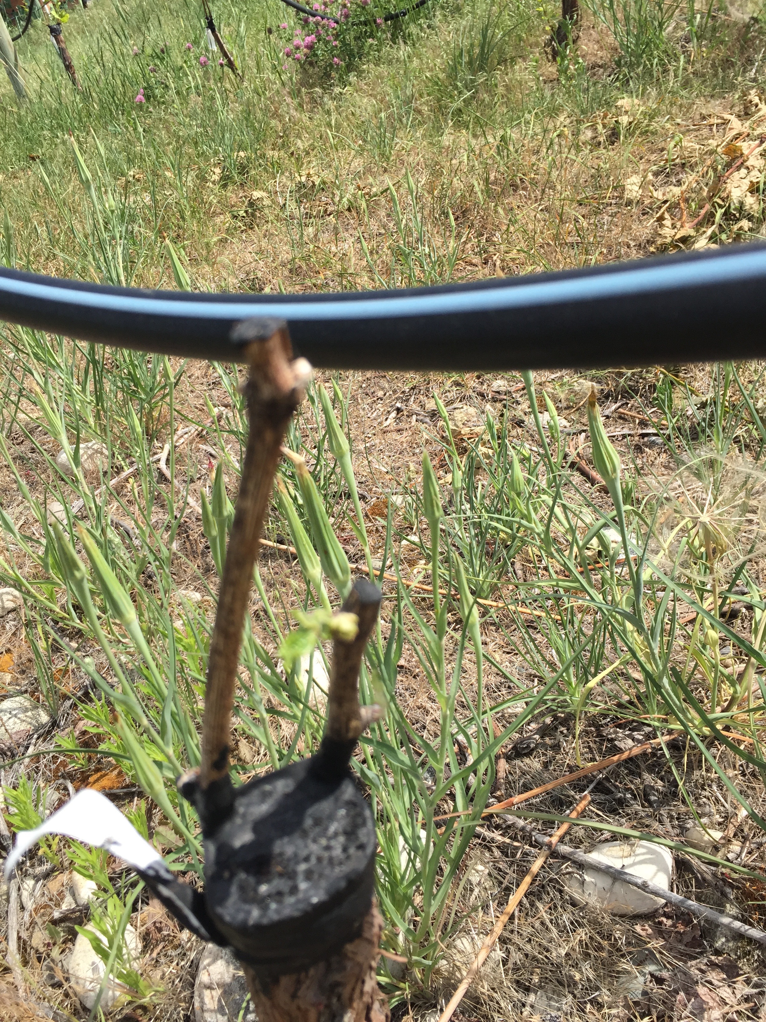 Here is an example of the graft that is 7 weeks old and just now had bud break. In the Chardonnay block it was poor performance all over, but it looks like it could still improve with more bud break happening later.